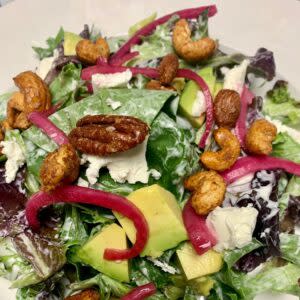 • The Laurel Park Salad – Avocado, goat cheese, pickled onion, bacon, spiced nuts